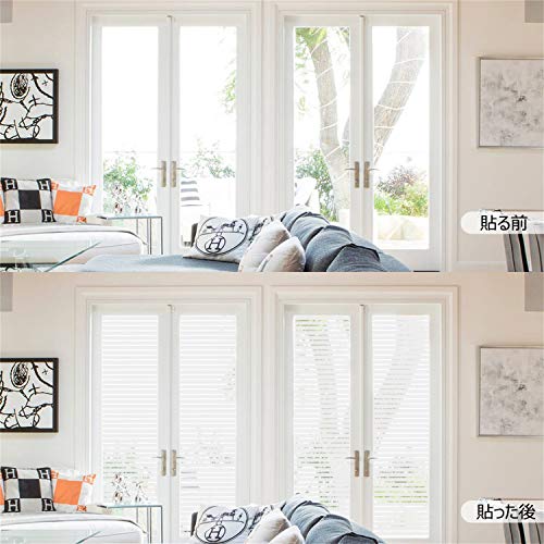 Rabbitgoo 目隠しシート 窓フィルム ストライプ 窓 めかくしシート 水で貼れるガラスフィルム 跡なくはがせる