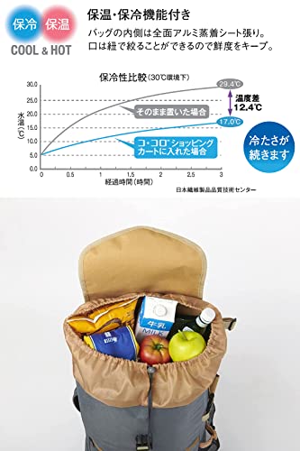 【保冷・保温機能付きで食品の鮮度をキープ】 バッグの内側は全面保冷効果のあるアルミ蒸着フィルムを使用しており、口は紐で絞ることができるので食料品のお買い物に最適です。