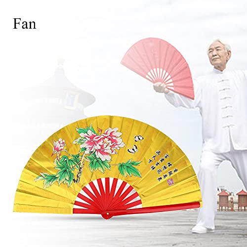 中華風扇子 折り畳み扇子 太極扇子 踊り用 太極 練習用 道具 竹製 手扇 扇子袋付属 典雅 装飾 贈り物(金)