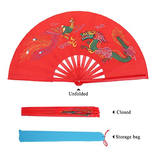 太極拳カンフーファン 折り畳み扇子 踊り用扇子 扇子袋付 太極拳 中華風 和風小物 袋の色ランダム