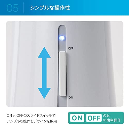 「シンプルで機能的」乾燥する冬場は毎日使う製品のため、シンプルに使いやすくオンオフの電源スイッチのみを搭載しました。上下にスライドさせるだけの簡単操作なので、手軽にお使いいただけます。