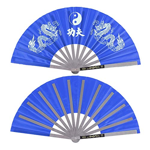太極拳 双竜功夫扇 太極扇 中国武術 太極拳用 武術扇子 中国風 折り畳み カンフー扇 公演 舞扇子 全3色(青)
