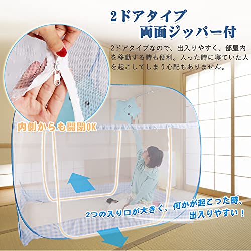 蚊帳 DEWEL ワンタッチ モスキートネット 2ドア設計 テント式 自立式 蚊/虫除け ムカデ対策 高さ160cm 底面付き