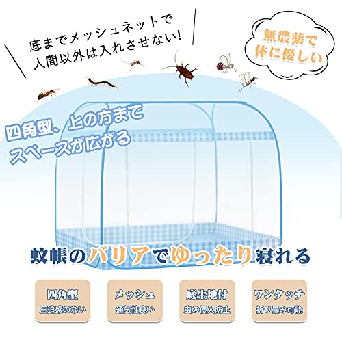 【細目なメッシュ&底面付き】?目の細かいネットを採用、小さな蚊でも通しません、嫌な蚊、虫をきっちんとガードします。?底面付きタイプで、蚊だけではなく、ムカデやゴキブリ等虫をガードできて、しっかり害虫の侵入を防ぎます。