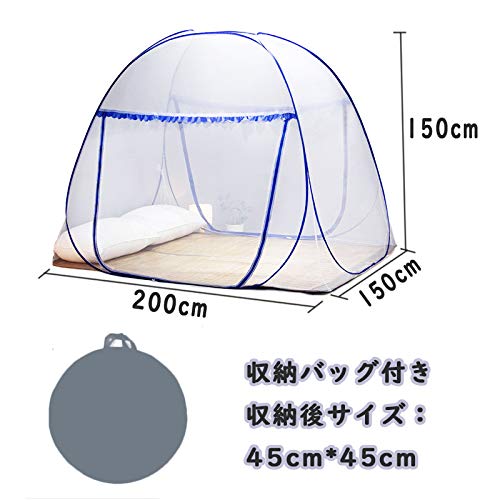 【ワンタッチ蚊帳】サイズ:長さ200×幅150×高さ150cm。ワンタッチデザインで簡単に組み立てることが出来る、女性でも楽々に使用できます。非常に軽いので、組み立てたまま移動することも可能です。靭性のあるワイヤーを使いますので、とっても丈夫で、長期間使えます。