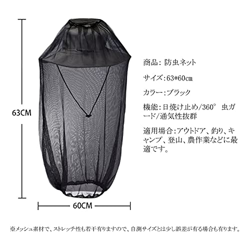 | 商品名 | 防虫ネット アウトドア 蚊よけネット 頭部蚊帳 63×60cm (ブラック防虫ネット) |