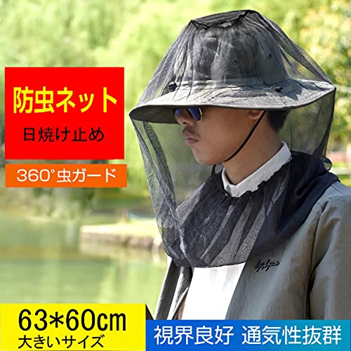 防虫ネット アウトドア 蚊よけネット 頭部蚊帳 63×60cm (ブラック防虫ネット)