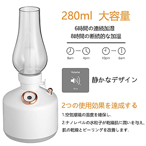 小型 加湿器 サイズ:9.5 9.5 22.5cm、重量:0.2kg、水タンク容量:280ml、ご家庭とオフィスに最適!付属品:ギフト用の箱1、空気加湿器1、Type-cデータケーブル1、綿棒2、説明書1(さらに3本の綿棒を無料で)
