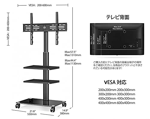 | 商品名 | FITUEYES テレビスタンド 32~60インチ対応 キャスター付き 三段 高さ角度調節可能 移動式 ブラック TT306002GB |