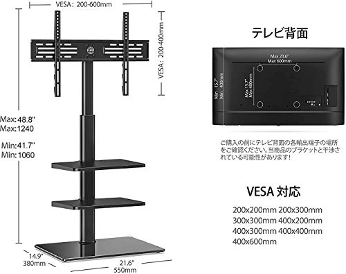 | 商品名 | FITUEYES テレビスタンド 32~60インチ対応 3段棚付き 壁寄せテレビスタンド 高さ調節可能 ラック回転可能 ブラ |