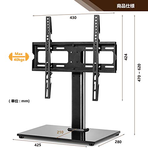 「VESA対応」 このテレビスタンドはほとんどの27 32 37 43 47 50 55インチのテレビに適しています。耐荷重は40kgで、100x100mmから400x400mmまでのVESAが対応可能です(VESAはテレビの背面に取り付けたネジ穴間の距離です)。LCD、LED、平面と曲面のスクリーンテレビも壁掛け可能です。例えば、Vizio Samsung TCL Sharp Haiser ToshibaとLGなどです。