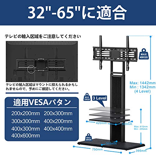 | 商品名 | FITUEYES ハイタイプ 背面収納付 テレビスタンド 32~65インチ対応 高さ調節可能 ラック回転可能 棚付き ウォー |