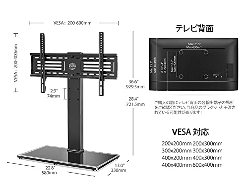 FITUEYES テレビスタンド 大型テレビ台 壁寄せ 左右±30度調整可能 40~80インチ対応 大荷重 高さ調節可能 TT105002GB