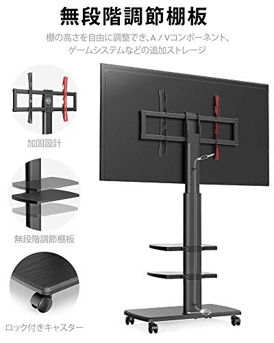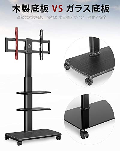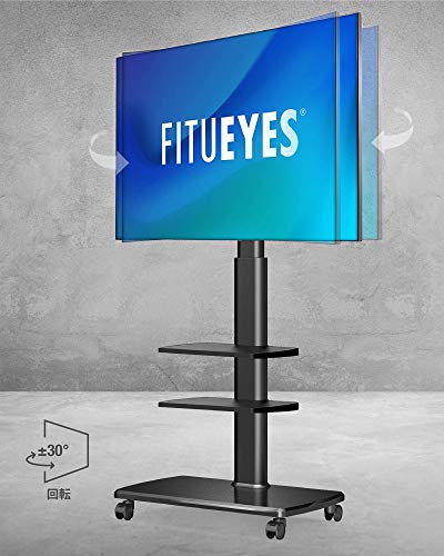FITUEYES テレビスタンド 32~65型対応 キャスター付き 高さ角度調節可能 移動式 木目調 ブラック 耐震 中棚無階