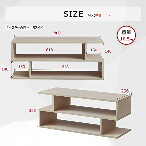 テレビ台 キャスター付き 幅800×奥行296×高さ380mm 2wayタイプ 組立簡単 コンパクト (メイプル)