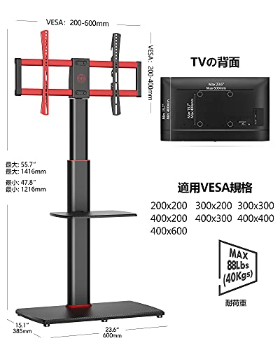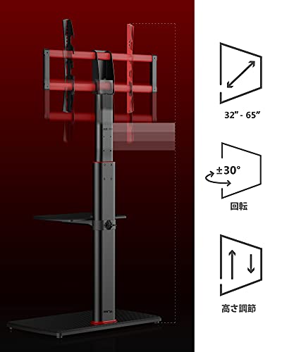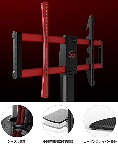 【魅力的な実用性もある設計】赤と黒で組み合わせた冷間圧延鉄素材主体、表面がカーボン的なテクスチャとなる18mmMDFベース、丈夫で魅力もあり、テレビが倒れる心配がなく安心で熱血の設計です。 しかも、左右30度回転できる調整機能も付いています。最適な調整角度で調整し、いろんな視角からの観賞を満たします。