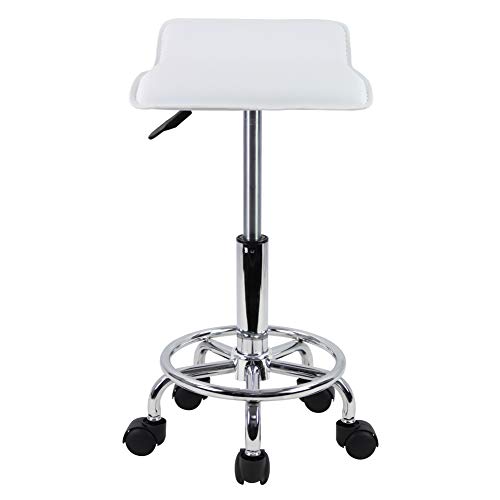 KKTONER 矩形 高さ調節可能回転昇降スツール キャスター付き フットレスト付き PUレザー ドラフトワーク作業ス