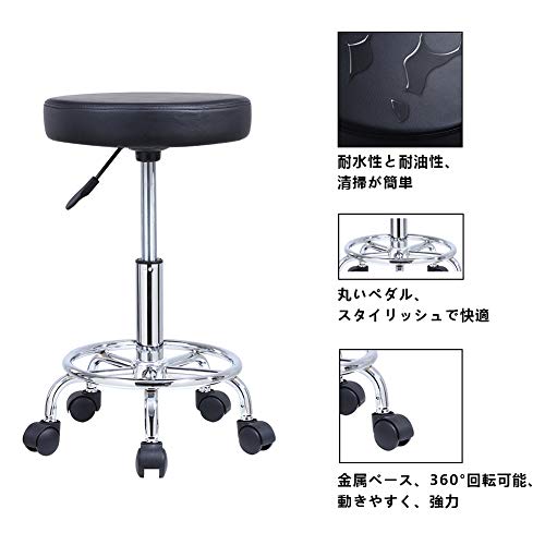 KKTONER 全5色 丸スツール キャスター付き 昇降スツール PUレザー 回転椅子 バーカウンターキッチンチェア製図