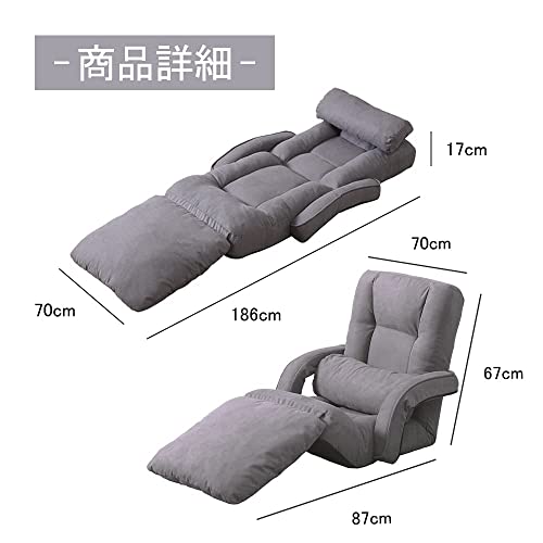 【商品仕様】幅70x奥行46~186x高さ17~67cm / 本体重量:約9.5kg。【クッション付き】本体と同色のクッションが付属し、腰に当てクッションまたは枕として使用できます。