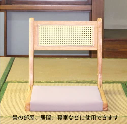 SHINWORKS 折り畳み椅子 瞑想式床椅子 おしゃれ 木製 室内 榻榻米シート (籐編みの背もたれ)