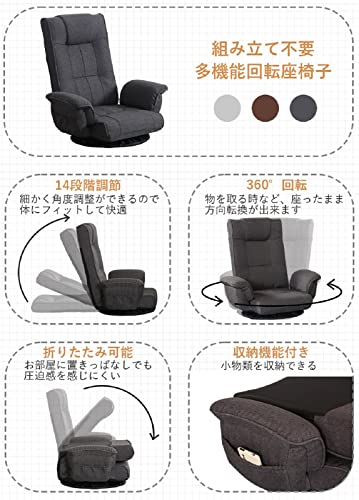 | 商品名 | 座椅子ソファー 回転式 座椅子 ハイバック ひじ掛け付き 14段階 リクライニング フロアチェア ふあふあ 一人 |