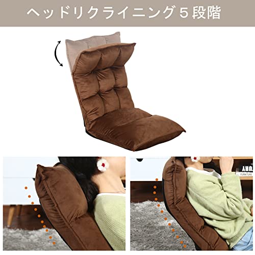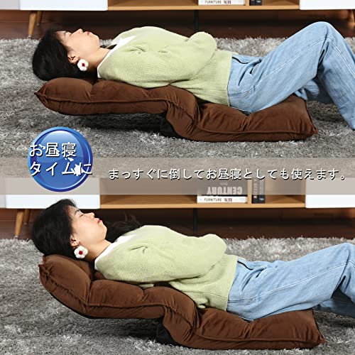 【頭部、腰部5段階ギア】リビングテープルやコタツ、テレビ台などとの相性抜群。頭部5段階、腰部5段階リクライニングでき、お好みの姿勢を見つけやすい。背中全体から首までしっかり支えて、長時間でも腰や首が疲れにくいです。