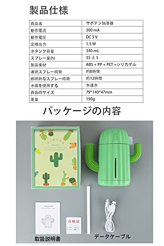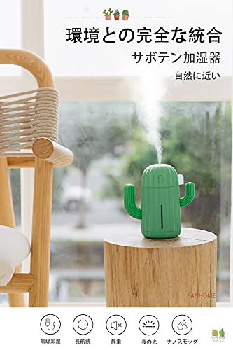 FANHOME 家庭用加湿器 ミニ新型サボテンの外観 特別なデザイン ストレスフリー 家庭用超音波340ml ポータ
