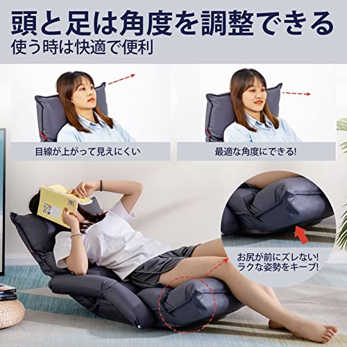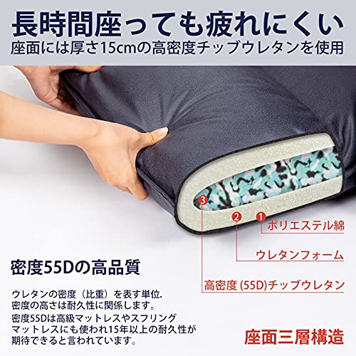 【多彩なリクライニング】背もたれ、頭部、脚部、腰部がそれぞれ可動します。脚部のフットレスト機能によりお尻が滑らず、負荷のかからない快適な体勢を保ってくれます。肘掛けがリクライニングに連動どの角度でも腕が楽!読書やTVの視聴やゲーミング、横になっての昼寝等、くつろぎ方は自由自在。リモートワークなど在宅でのお仕事にもお勧めです。ハイバックで座り心地が良いとご好評いただいて