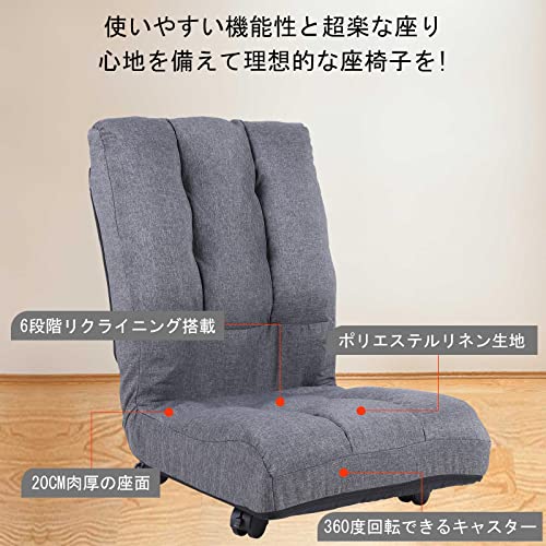 FLOGUOOR 座椅子 回転 座椅子ソファー キャスター付き フロアチェア 6段階調節 リクライニング 20CM肉厚座面 ふ