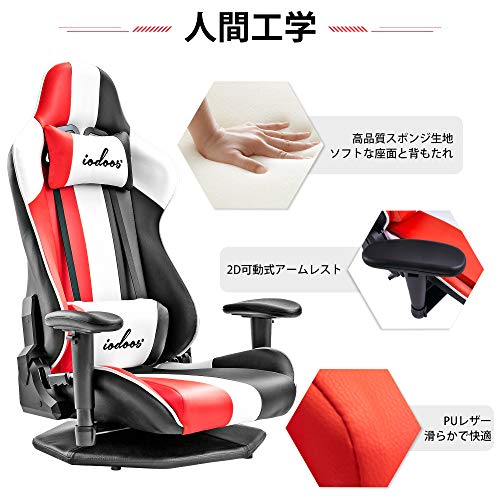 iodoos ゲーミングチェア 座椅子 ゲーミング座椅子 回転 170度リクライニング ひじ掛け付き 無償部品交換保証165