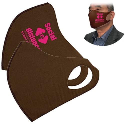 クロッツ XLサイズマスク 2枚入り 洗える 水着素材 伸縮 (ブラウン+ソーシャルディスタンスロゴ, XL)
