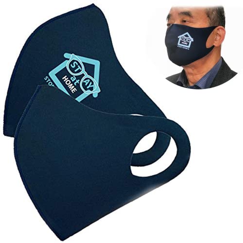 クロッツ XLサイズマスク 2枚入り 洗える 水着素材 伸縮 (ネイビー無地+ステイホームロゴ, XL)