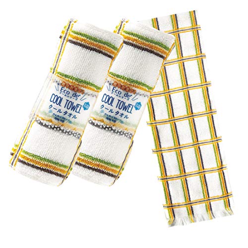 クールタオル 冷却タオル Eco de クール 濡らさなくても冷たい 約16cm×90cm 2枚組 セット カラフルチェック イエ