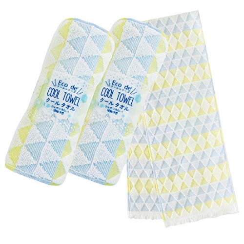 クールタオル 冷却タオル Eco de クール 濡らさなくても冷たい 約16cm×90cm 2枚組 セット ダイヤ イエロー (冷感