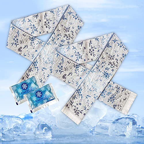 クールタオル 冷却タオル 接触冷感 冷たいタオル クールマフラー 保冷剤 付き 花柄 フラワー ブルー 8cm×90cm 2