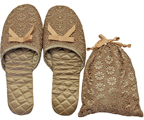 Pomponner 大花 レース 携帯 スリッパ ポーチ付き ベージュ 70982