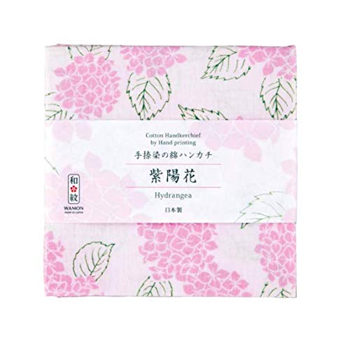 のレン 手捺染 綿 ハンカチ 風呂敷 友禅 型染め 日本製 綿100% 生地 (紫陽花ピンク)