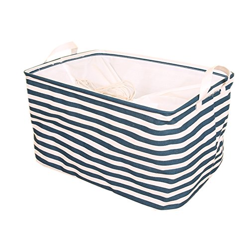 BUYUE 収納ボックス 折り畳み式 大きいサイズ 綿麻布製バスケット巾着 約幅44×奥行30×高さ24.5cm ブルー