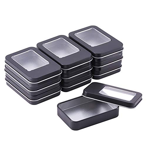 BENECREAT 10個9.15x6.35x1.71cm黒色長方形鉄ボックス ブリキ缶 クリア窓(5.48x4.26cm) 錆止め パーツ ビーズ 小物入れ 詰