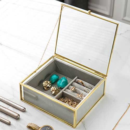 KAOYOO 鏡付き宝石箱 携帯用アクセサリーケース ジュエリー収納 着脱式の仕切 指輪、ネックレス、イヤリング