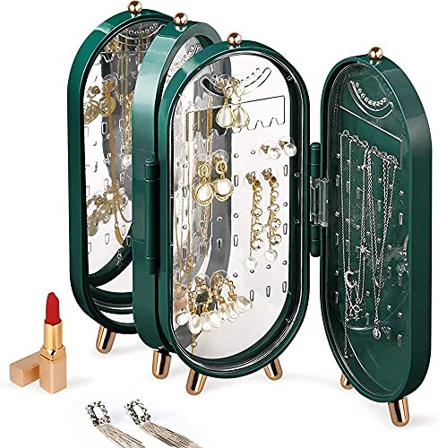 ジュエリー収納ケースジュエリーボックス 折りたたみ式収納153穴イヤリング&21個のセルフリセスミラーネッ