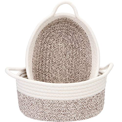 Sea Team 収納バスケット かご 北欧 カゴ コットンロープ おもちゃ収納 編み込み 持ち手付き おしゃれ 小型 2点