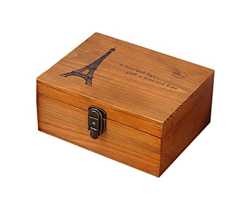 Ansimple ビンテージ風 ナチュラルな 木製 鍵付き 小さめ 収納ボックス 木箱 オシャレ雑貨