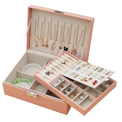 ドットコムプライム ジュエリーケース ボックス アクセサリー 収納 大容量 二層 鍵付き ピンク