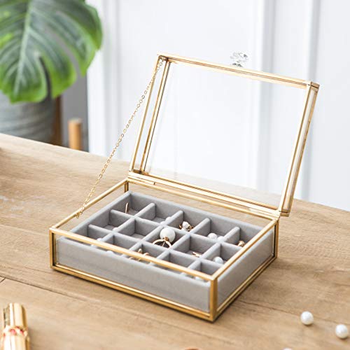 SukiQi 15区画 アクセサリーボックス ベルベット調 ジュエリーケース 耳飾り ピアス 指輪 ディスプレイ収納ケー