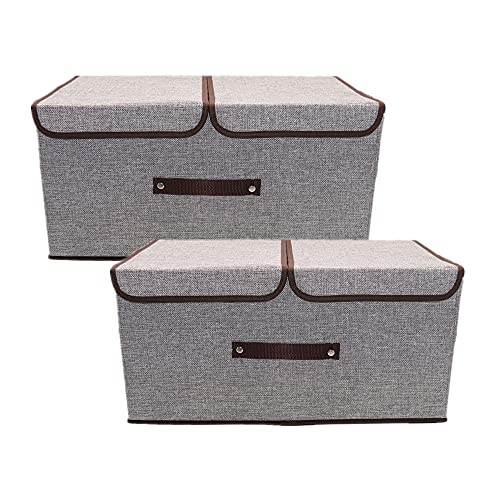 ふた・仕切り付き マルチ収納ケース 折りたたみ可能 リネン 小物 おもちゃ 整理 衣類収納ボックス (グレー, 37