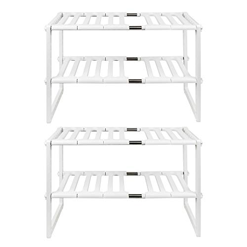 kinlight シンク下伸縮棚 キッチン収納 すきま収納 収納2段 洗面ラック フリーラック伸縮タイプ組立式 ホワイト