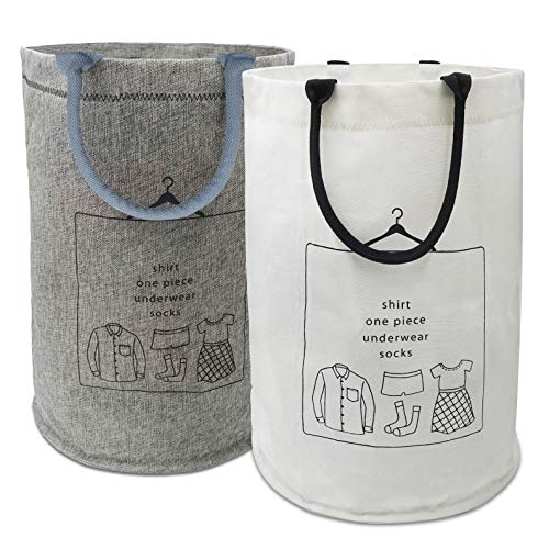 MgDa 洗濯かご 折り畳み式 撥水 ランドリーバスケット 取って付き 大容量 綿麻 収納ボックス 省スペース (2セッ