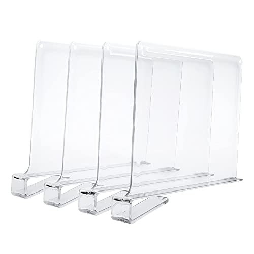 Homtone 4個棚仕切りセット アクリル製 本立て 棚ディバイダー 透明 クローゼット・本棚用 シェルフディバイダ
