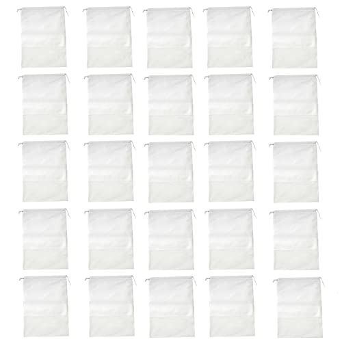 靴袋 巾着 不織布 シューズバッグ 収納袋 服入れ 透明窓付き 靴収納ケース (白, Lサイズ 20枚入)